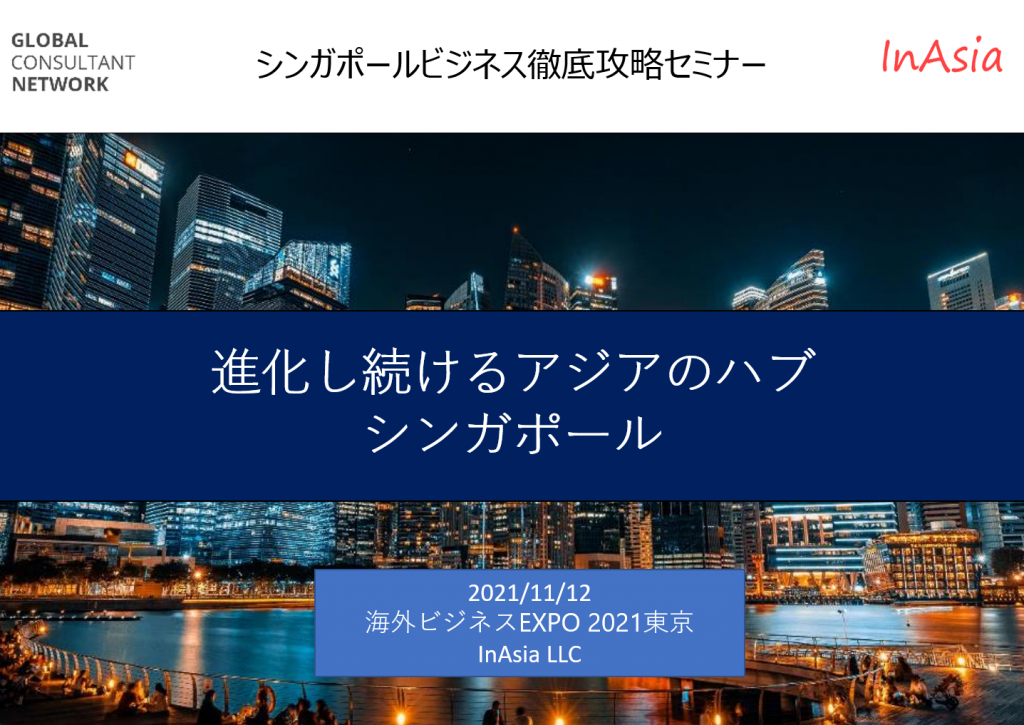 海外ビジネスEXPO 2021東京 (2021年11月11-12日 浜松町 東京都立産業貿易センター) で、シンガポールビジネスに関するセミナーを開催いたしました。当日は多くの方にご参加いただき大変ありがとうございました…